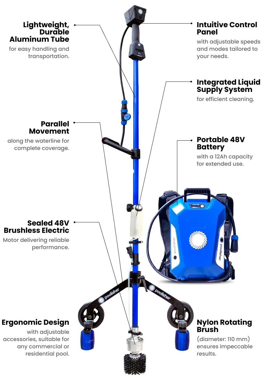 Poolisher isn’t just a tool; it’s the ultimate solution for those looking to simplify waterline maintenance. Perfect for both pool owners and maintenance companies seeking efficient and hassle-free cleaning
